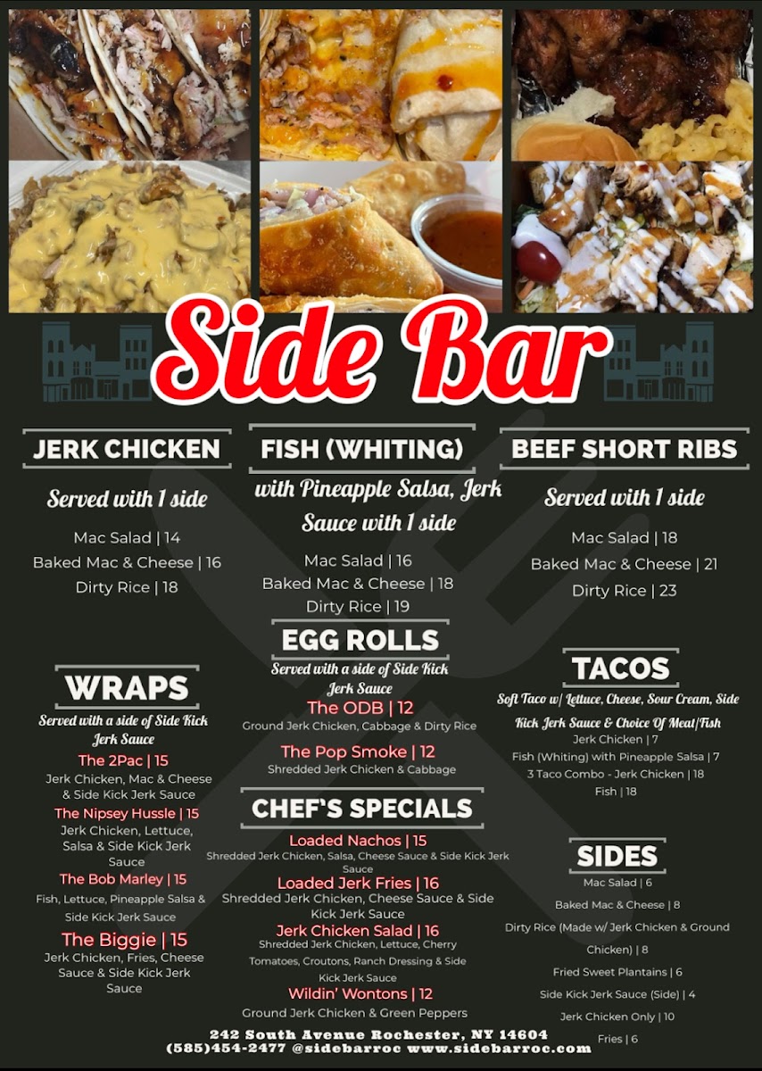 Welcome to Side Bar, an inviting culinary gem nestled in downtown Rochester at 242 South Ave. This vibrant locale seamlessly blends a relaxed atmosphere with a menu bursting with delicious offerings and inventive cocktails.